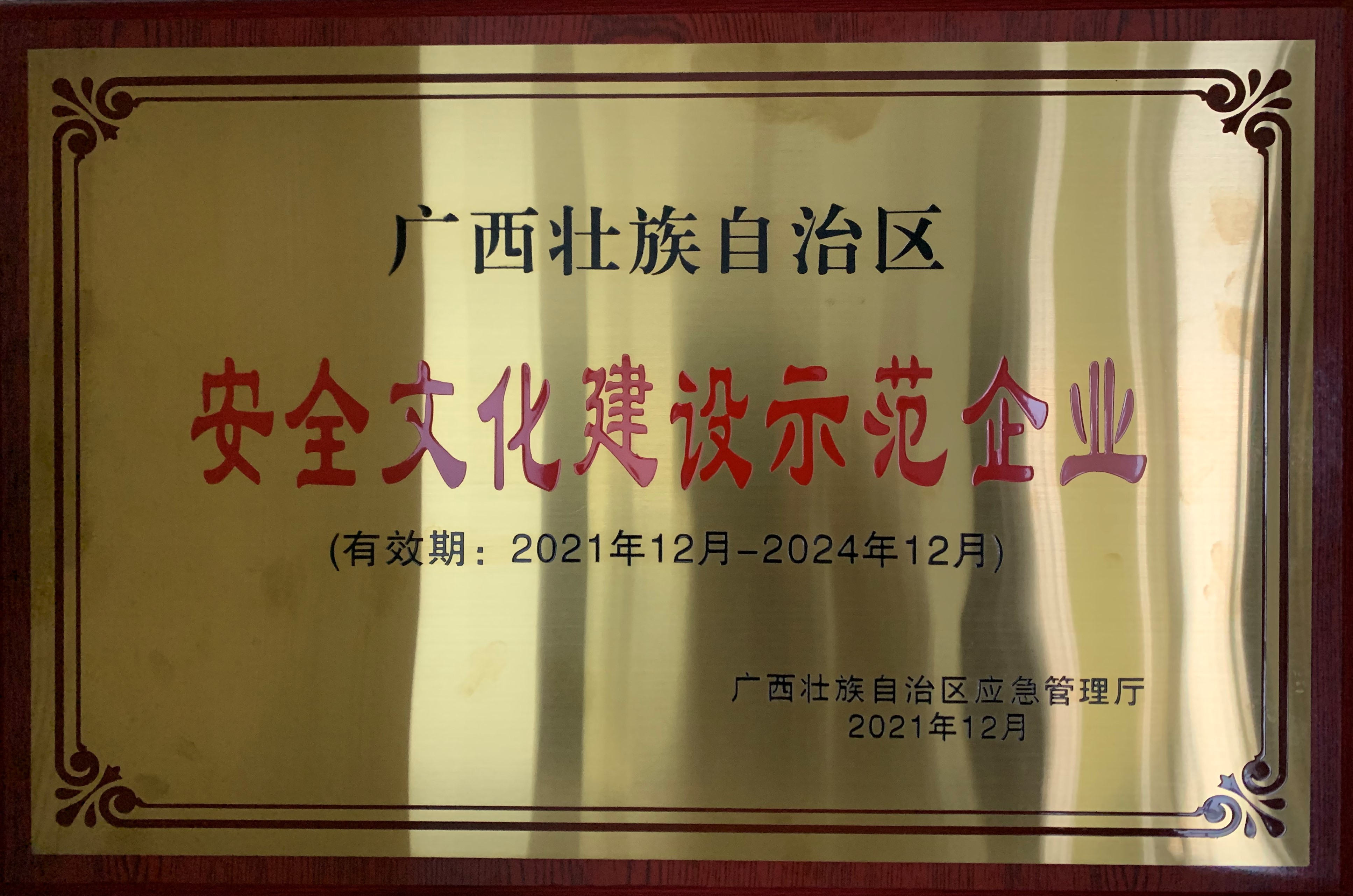 2024年廣西壯族自治區安全文化建設示范企業...