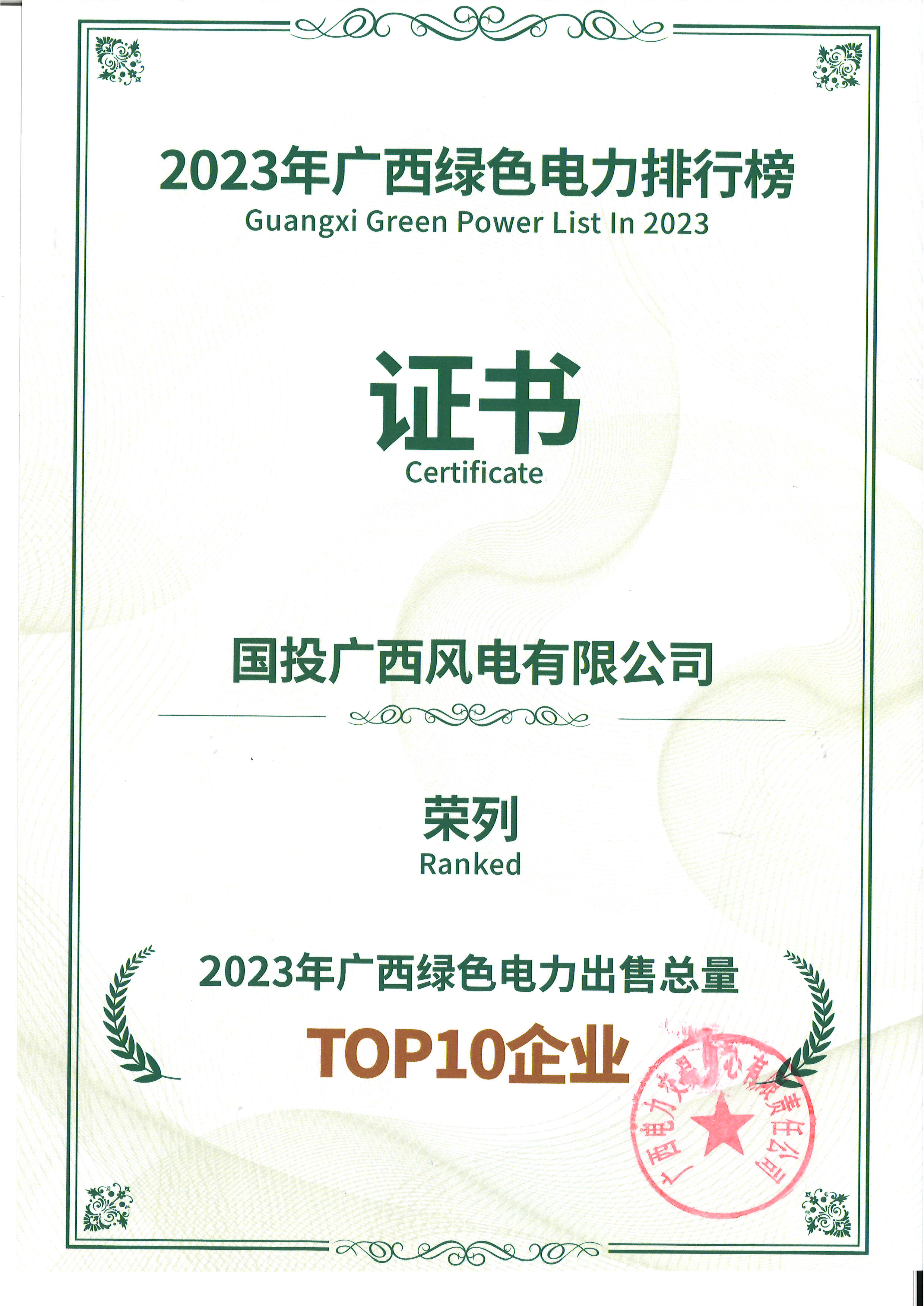 2023年廣西綠色電力出售TOP10企業
